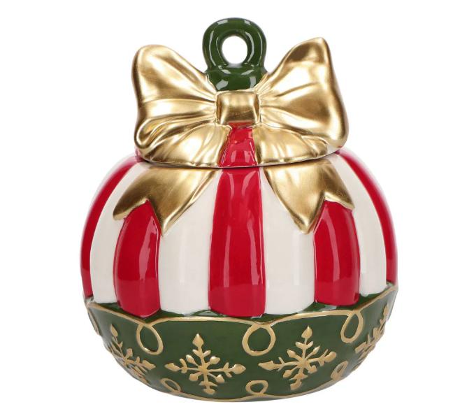 BARATTOLO DI BISCOTTI A PALLA DI NATALE IN CERAMICA 16X16X17,5CM,MULTICOLORE ART.254150