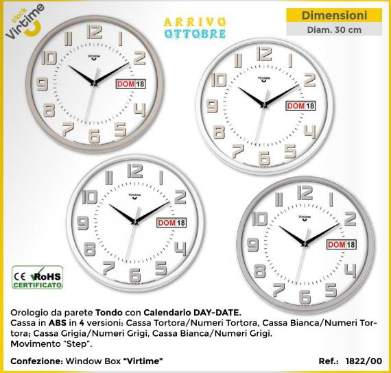 OROLOGIO PARETE ABS TOND D.30 KAL. Q. BIANCO – 4 C.ASS ART.1822/00
