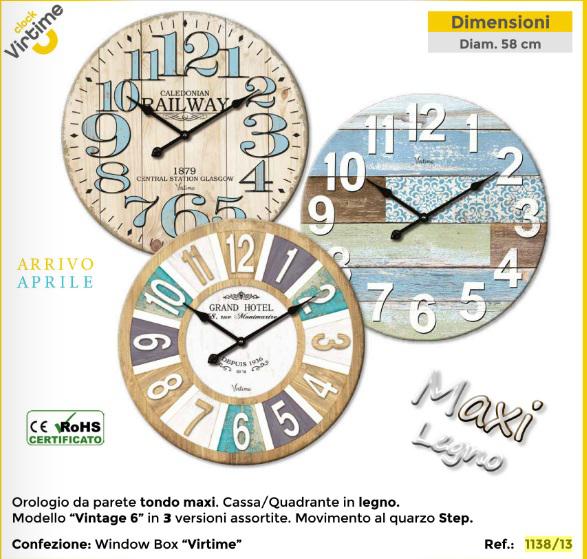 OROLOGIO PARETE”LEGNO TONDO MAXI” D.58 VINTAGE6 -3 Q.ASS ART.1138/13