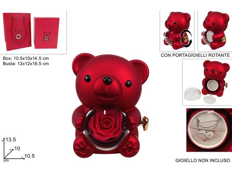 ORSETTO 13.5CM CON ROSA ESTERNA E PORTAGIOIELLI IN SCATOLA REGALO ART.XSV25002111