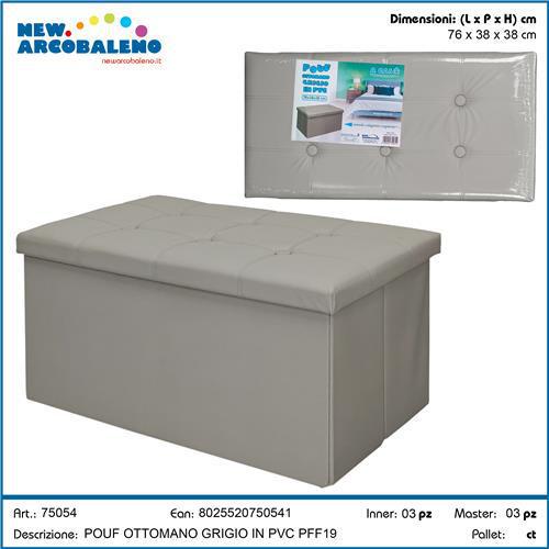 POUF RETTANGOLARE GRIGIO IN PVC 76X38X38 CM PFF19 ART.75054