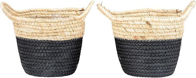 SET 2 CESTINI TONDO NATURALE C/NERO ART.659502