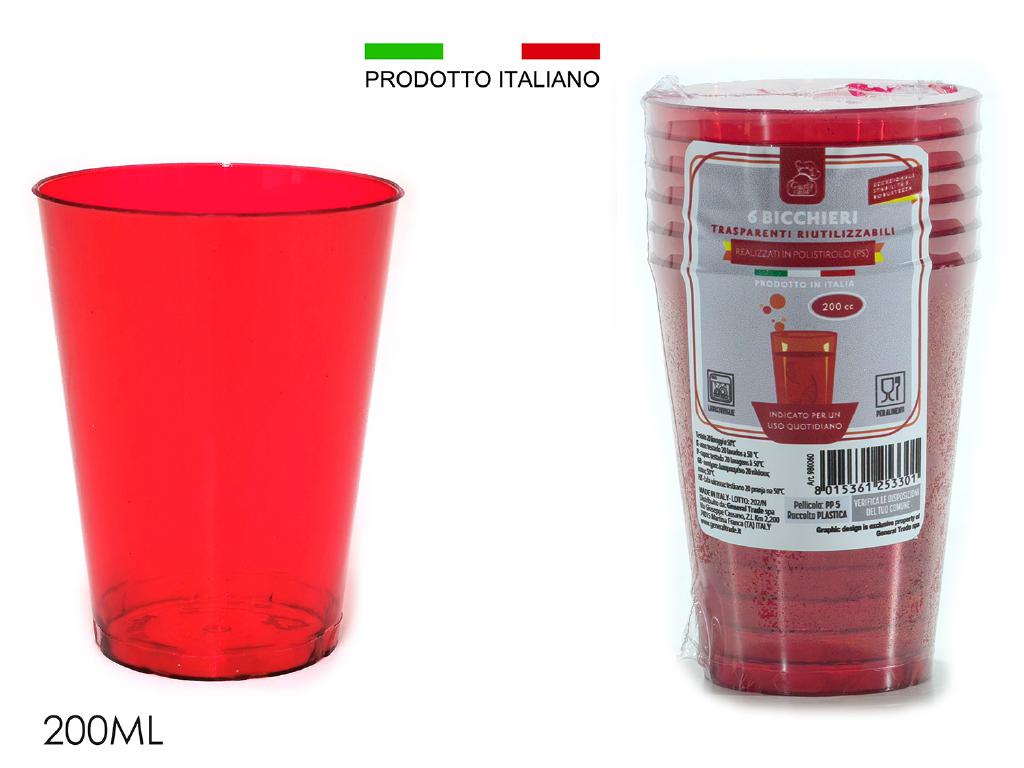 SET 6 BICC. ACQUA ROSSO PLAST. 200 ML ART.980060